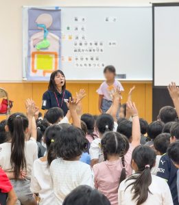 子どもたちは「すごい!」「がんばれ菌!」と声を上げながら、