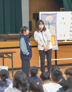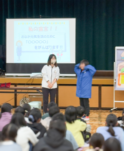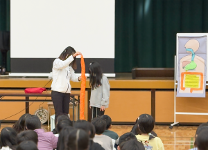 海老名市立杉久保小学校の5年生、約80名のみなさんに「おなか元気教室」を行いました。